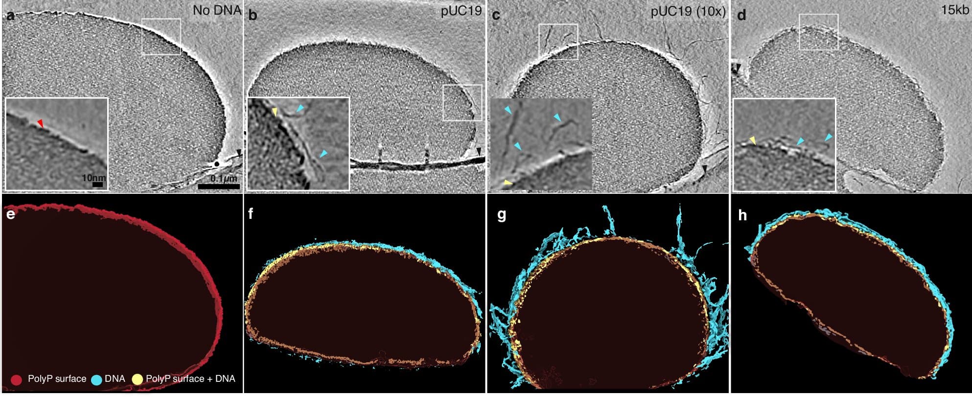 Группа талантливых ученых под руководством Лизы Рэки и Ашока Дениза провела революционное исследование с использованием передовых технологий. Применив комбинацию флуоресцентной микроскопии, где молекулы были помечены специальными красителями, и электронной криотомографии для детального изучения структуры, им удалось наблюдать, как нити ДНК взаимодействуют с поверхностью полифосфатных конденсатов.