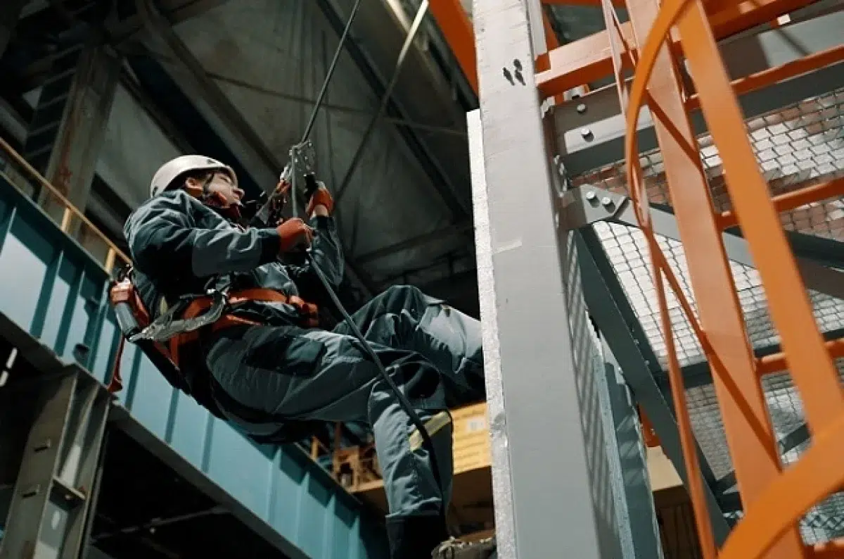 Многофункциональная площадка, размещенная в цехе холодной прокатки, оснащена передовыми системами защиты и включает 12 специализированных зон. Каждая из них моделирует типовые производственные задачи: перемещение по кровле из профлиста, подъем по вертикальным лестницам, эвакуационные процедуры из крановой кабины. Особое внимание уделено работе с энергооборудованием — установлены макеты опор ЛЭП, подкрановых путей, а также имитаторы замкнутых пространств.